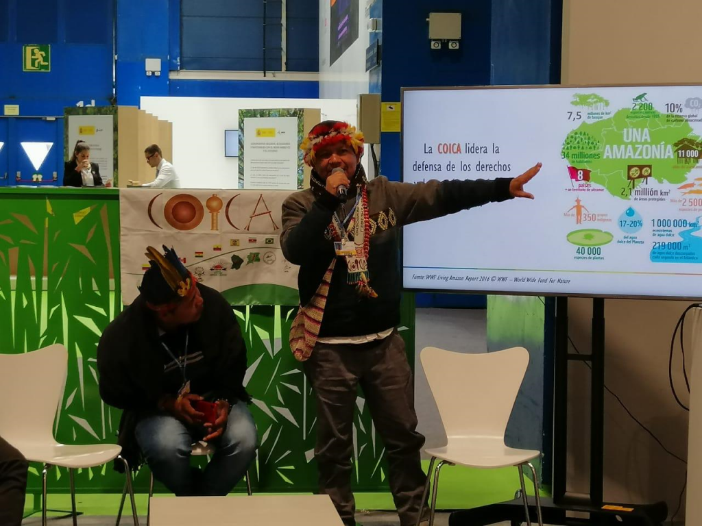 Durante el evento paralelo “Amenazas a la Amazonía: incendios, infraestructura y deforestación”, representantes de organizaciones indígenas de la Cuenca Amazónica, alzaron su voz para dar a conocer sobre las amenazas a sus territorios que provocan la deforestación y el cambio climático como lo fueron los devastadores incendios que azotaron la Amazonia y que fueron portada de medios los últimos meses.