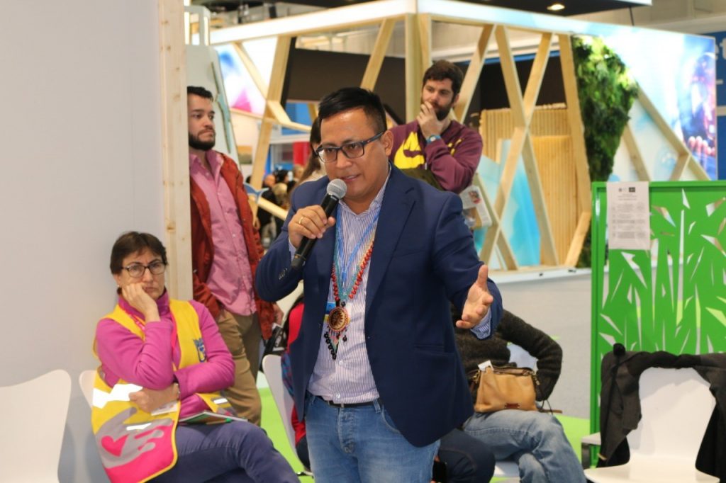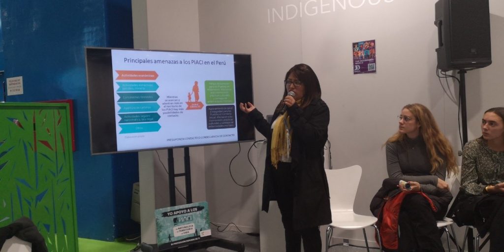 Madrid, 6 de diciembre de 2019. En la primera semana de la COP 25, la Coordinadora de Organizaciones indígenas de la Cuenca Amazónica (COICA), con el apoyo técnico de Derecho, Ambiente y Recursos Naturales (DAR), realizó el side event “Pueblos Indígenas en Aislamiento y Contacto Inicial (PIACI) de la Cuenca Amazónica” en el Pabellón Indígena de la Feria de Madrid (IFEMA).