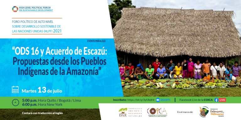 COICA y DAR llevarán a cabo evento paralelo en el Foro Político de Alto Nivel
