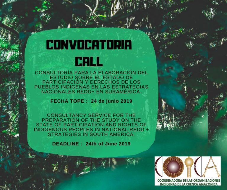 En el marco de la segunda fase del Proyecto “Programa de Fortalecimiento de Capacidades en REDD+ para los Pueblos Indígenas de América Latina”, el cual se identifica con la donación del FCPF No. TF0A2446, les comunicamos que dentro de las acciones contempladas, se ha previsto la CONTRATACIÓN DEL SERVICIO DE CONSULTORÍA PARA LA ELABORACIÓN DEL ESTUDIO SOBRE EL ESTADO DE PARTICIPACIÓN Y DERECHOS DE LOS PUEBLOS INDIGENAS EN LAS ESTRATEGIAS NACIONALES REDD+ EN SURAMÉRICA.