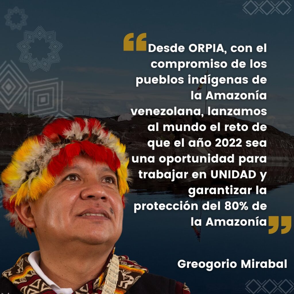 Gregorio Mirabal, del pueblo indígena Wakuenai – Kurripaco, originario de la comunidad Guarinuma de la Amazonía venezolana, se reencontró con su pueblo después de dos años de permanecer fuera de su país. La pandemia y su compromiso dirigiendo la actual gestión de COICA como coordinador general, no le permitió retornar antes a su territorio. En su visita, en conjunto con los líderes y lideresas de la Organización Regional de Pueblos Indígenas de Amazonas – ORPIA, cumplió una ardua agenda en los territorios amazónicos, donde impulsó la iniciativa “Amazonía por la vida: protejamos el 80% hasta el 2025”.