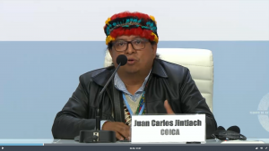 Por su parte, Juan Carlos Jintiach técnico de COICA señaló que al menos 5 mil comunidades muy organizadas y la organización que representa, en el marco de la Declaración Universal de los Derechos Humanos y del Convenio 169 de la OIT, han realizado esfuerzos con aliados, para que la consulta previa sea una bandera de lucha para tener una interacción con los Gobiernos. Señaló que ellos trabajan con la agenda indígena amazónica remarcando principios fundamentales al respeto a los derechos humanos, a los pueblos indígenas en situación de aislamiento, a la gobernanza propia de cada organización indígena y a la protección de los pueblos como grandes defensores del bosque.