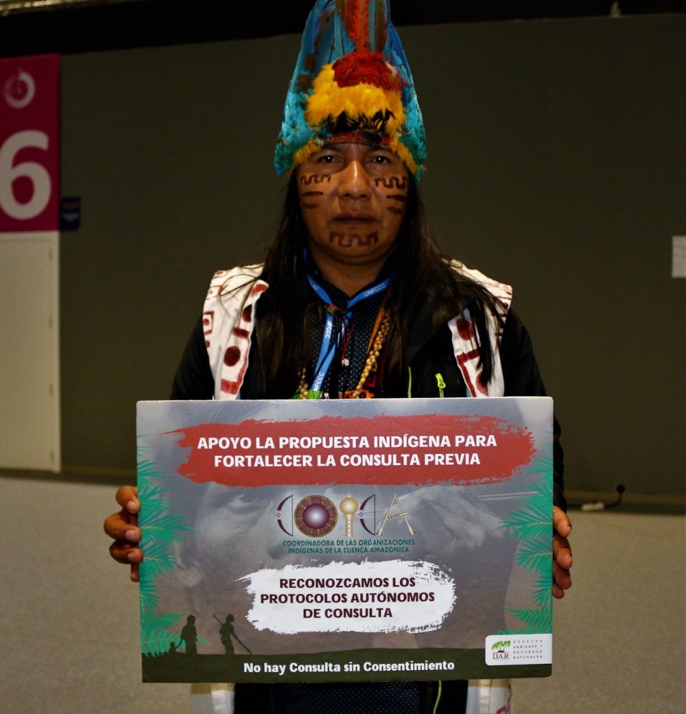 La Coordinadora de las Organizaciones Indígenas de la Cuenca Amazónica (COICA), con el apoyo técnico de Derecho, Ambiente y Recursos Naturales (DAR), inició la campaña “No hay Consulta sin Consentimiento”, en el marco del lanzamiento de la propuesta de un Protocolo de Consulta Regional de los pueblos indígenas de la Amazonía.