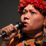 “Estamos aquí para reafirmar nuestro compromiso con nuestros territorios, con nuestra vida y decirle No al Marco Temporal por nuestra historia, por nuestros niños, por nuestros territorios sagrados.” Nara Baré, Coordinadora COIAB.