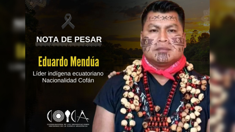 RECHAZAMOS EL ASESINATO DE EDUARDO MENDÚA DEL PUEBLO KOFAN DEL ECUADOR