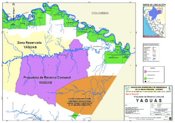 Mapa indicando el área propuesto para la Reserva Comunal Yaguas